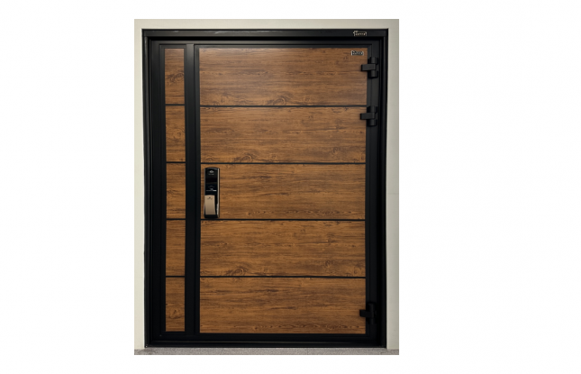 공장에 전시된 모델인 SH3070(블랙+나이브우드) 최고급 프리미엄 더블단열도어 입니다.