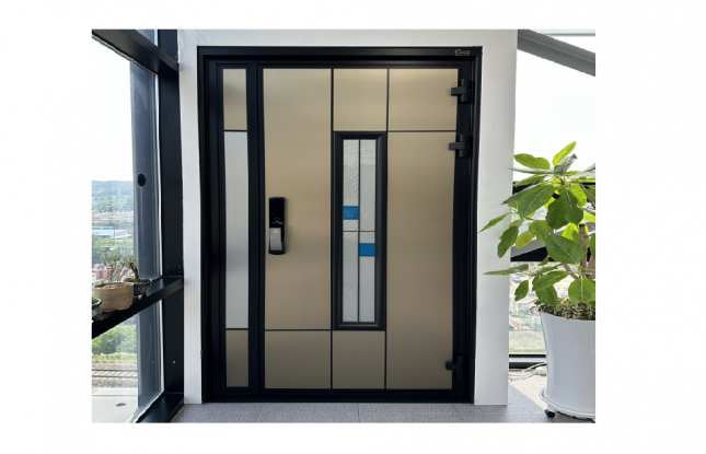 공장에 전시된 모델인 SH3103(블랙+다크그레이) 최고급 프리미엄 더블단열도어 입니다.