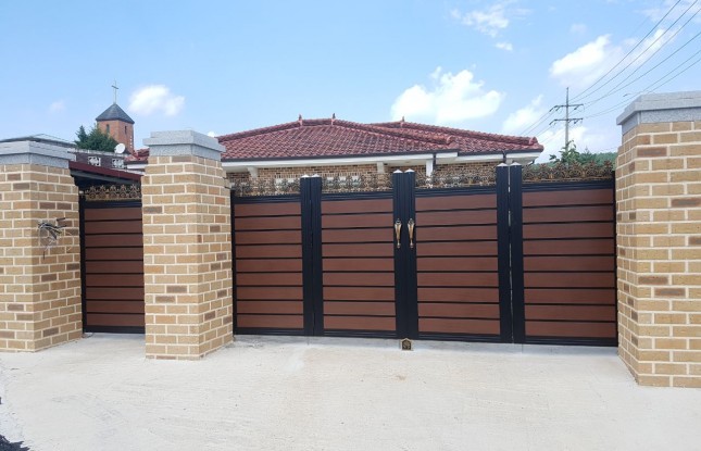 보은에 시공한 조립대문 입니다.모델명: FG126 색상: 블랙+월넛